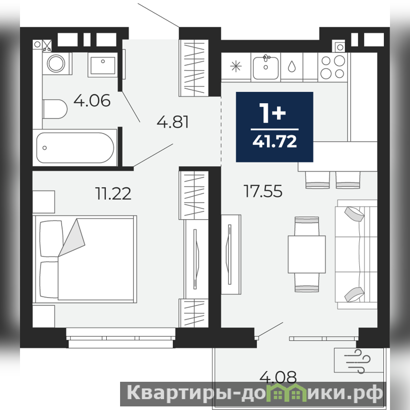 1-комн. квартира с предчистовой отделкой в ЖК "Прео" на 7 этаже. Общая площадь: 38.86 кв.м., жилая: 11.22 кв.м., площадь просторной кухни-столовой: 17.55 кв.м. Все окна выходят на одну сторону. В квартире один балкон, один совмещенный санузел. Высота потолков 2.7 м.