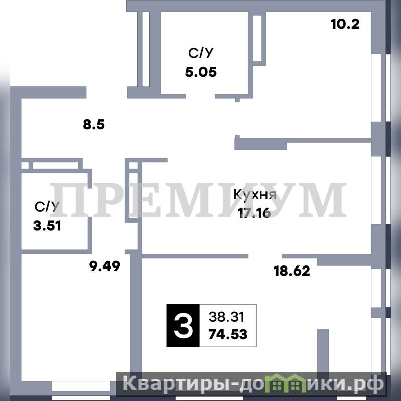 Последняя возможность приобрести просторную трёхкомнатную квартиру, остальные уже проданы!!! Срок сдачи дома и передача ключей - январь-февраль 2026 года.