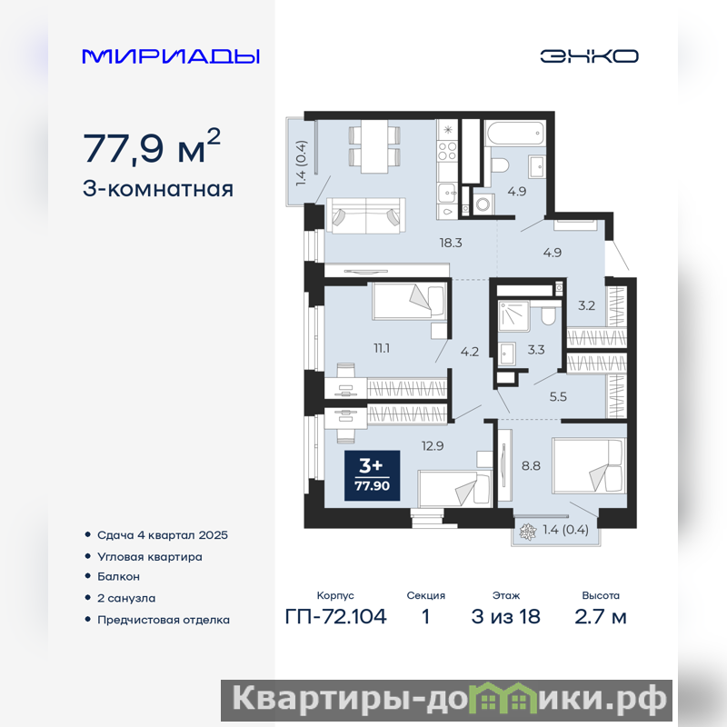 | 18.3 м2 | |