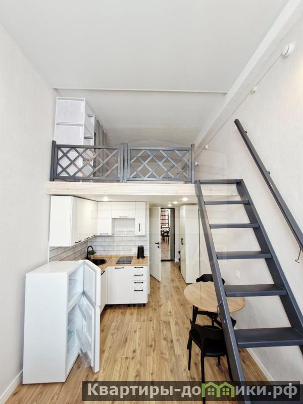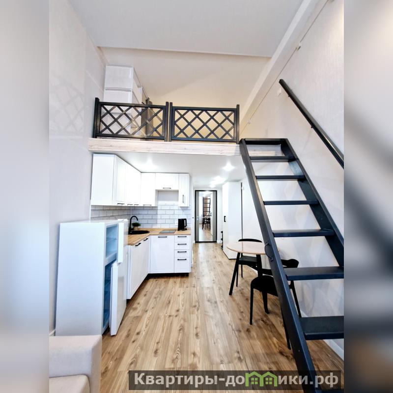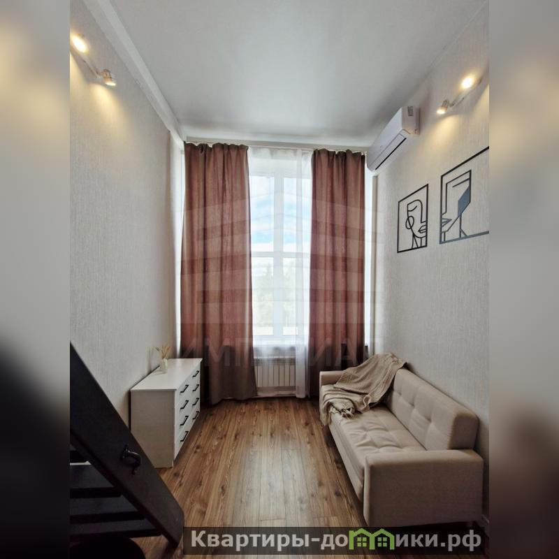 Уютная студия с мебелью и техникой.