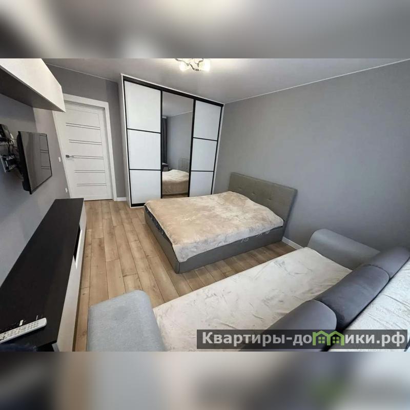 В квартире сделан новый ремонт. В комнате есть и диван, и двухспальная кровать, также большой шкаф купе, телевизор остаётся.