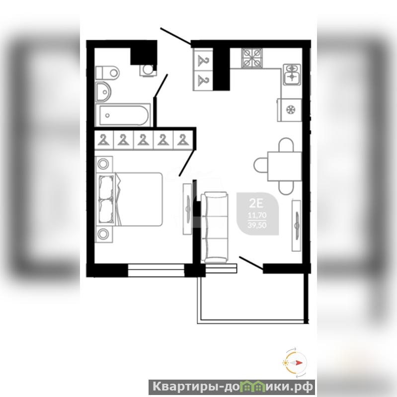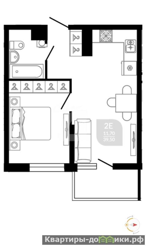 Планировка с большой кухней.