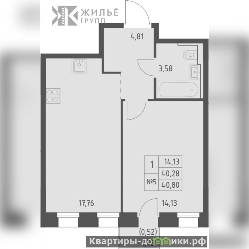 Просторная кухня - 17,76 м?, комната - 14,13 м?
