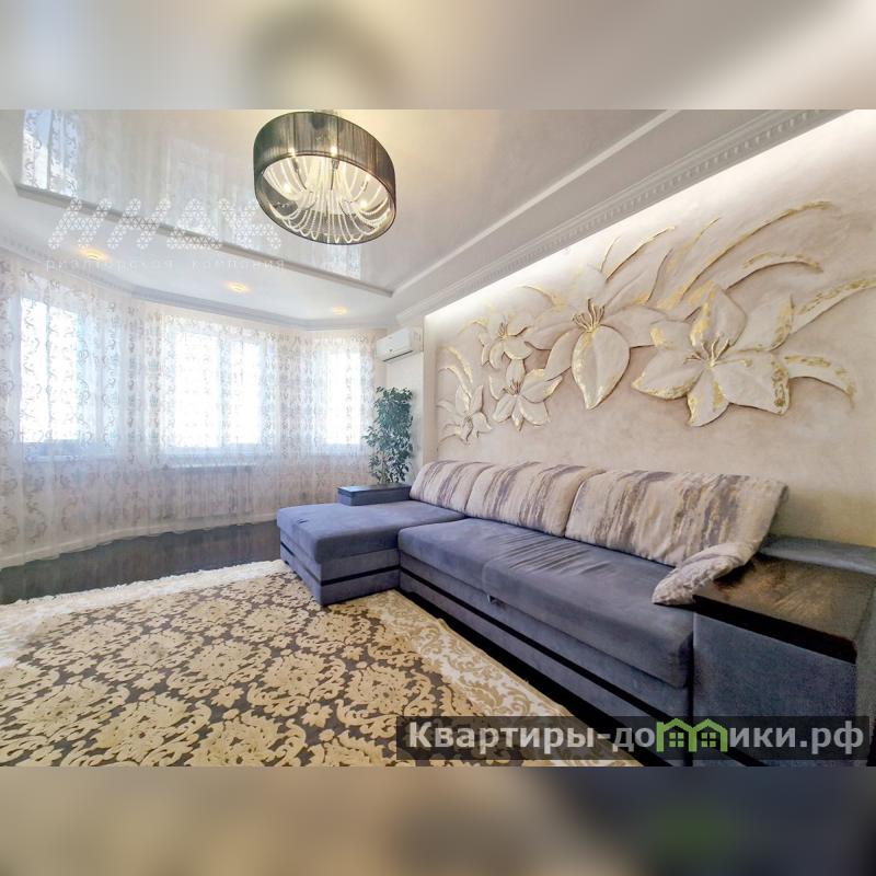 Просторная гостиная с акцентной стеной оформлена цветочным берельефом, идеально подходит для семейных встреч и вечерних посиделок с друзьями.