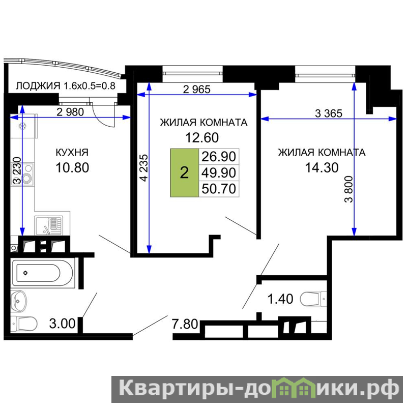 Жилая площадь 26.9 м2, кухня 10.8 м2, предчистовая отделка.