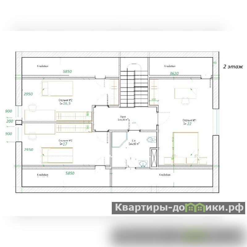 2 этаж: Три спальни (17/16/22), с/у с душевой, много мест для хранения.