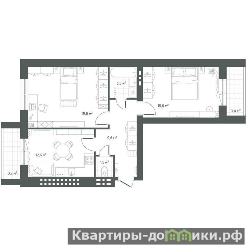 Продаётся 2 комнатная квартира в ЖК Земляничный (пгт Петра-Дубрава, ул. Строителей д.7).