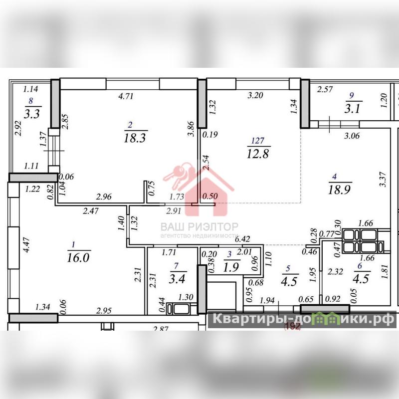 Квартира общей площадью с лоджиями 86,3 кв.м.