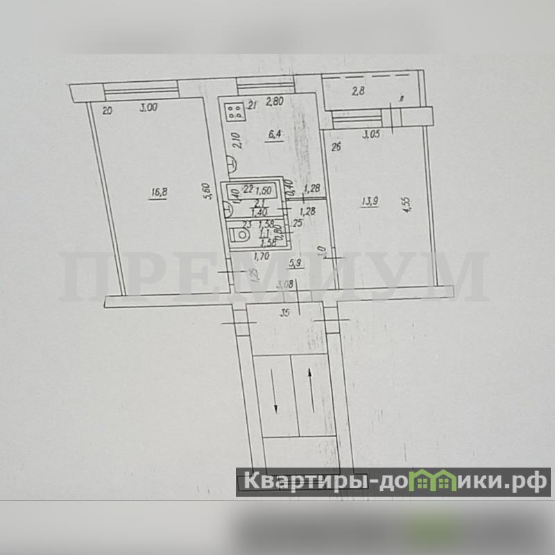 Комнаты разделены большим коридором. Зал - 13,9 м2. Комната - 16,8 м2. Раздельный санузел в кафеле. Большая застеклённая лоджия - 2,8 м2. На кухне котёл индивидуального отопления. Что позволяет регулировать температуру круглый год. И не переплачивать за отопление в зимой. Замeнены стояки в санузле, новые радиаторы отопления и входная дверь. В квартире остаётся: кондиционер, кухонный гарнитур, шкаф -купе.